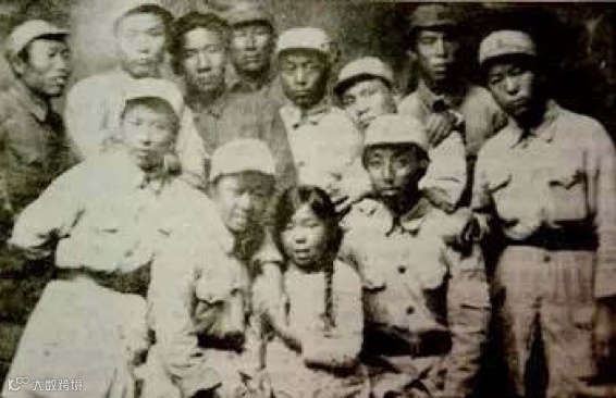 小说《铁道游击队》的作者刘知侠(后排左三)与铁道游击队队员们合影