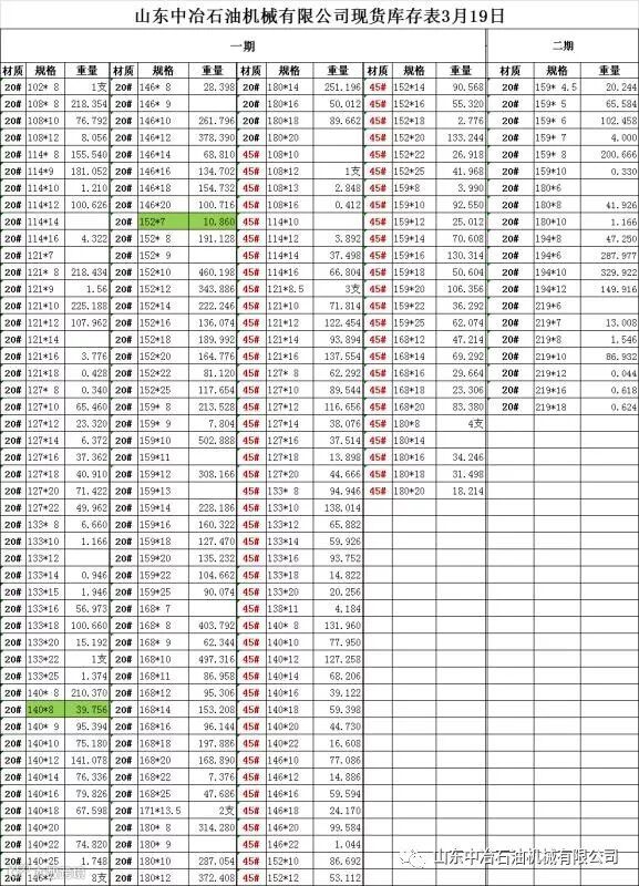 2019年3月19日中冶库存表 山东中冶石油机械有限公司