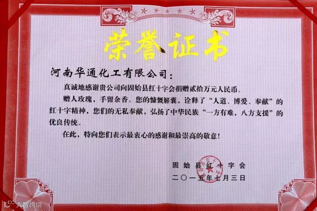 河南华通作为河南省民爆器材骨干生产企业之一,近年来,企业在发展壮大的同时,积极投身社会公益事业,开展扶危济困、捐资助学等公益活动,受到当地政府和广大群众的一致好评。