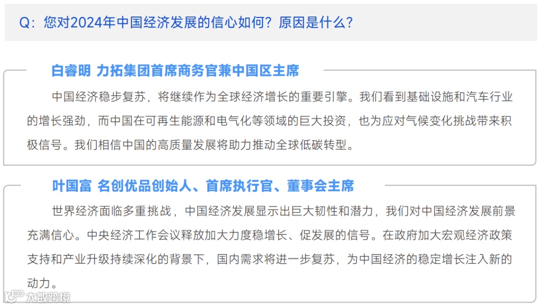 相对多数企业管理者认为中国经济在2024年机遇将多于挑战