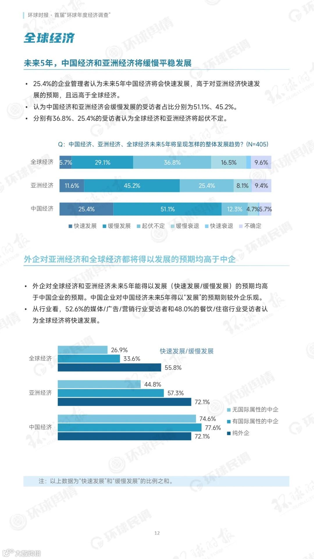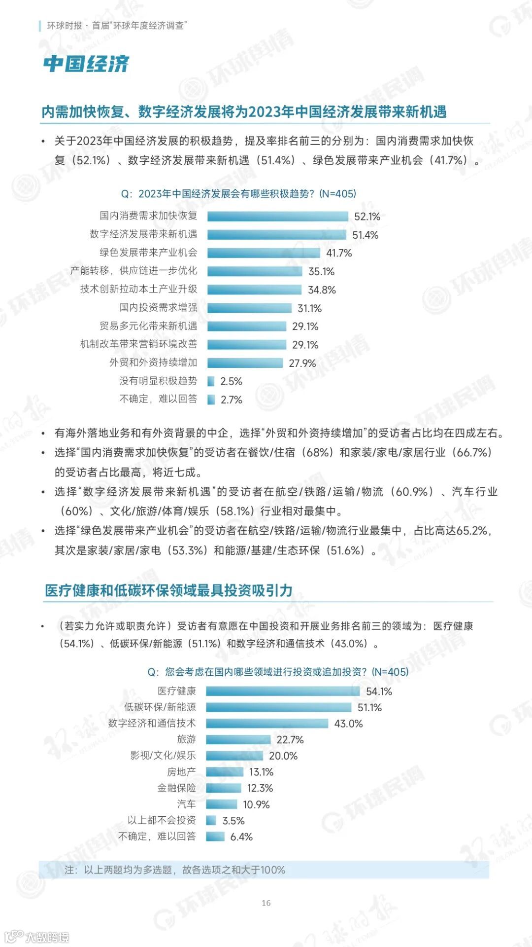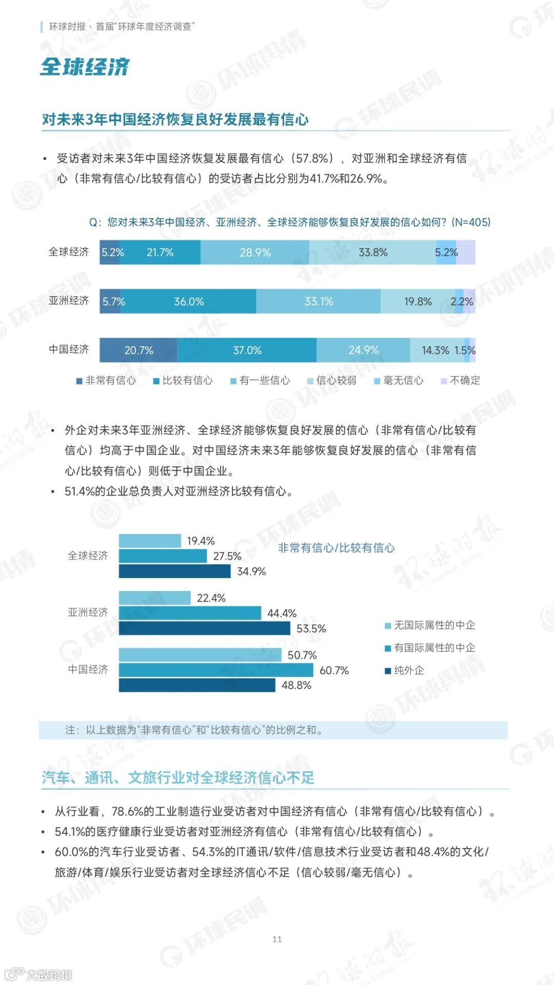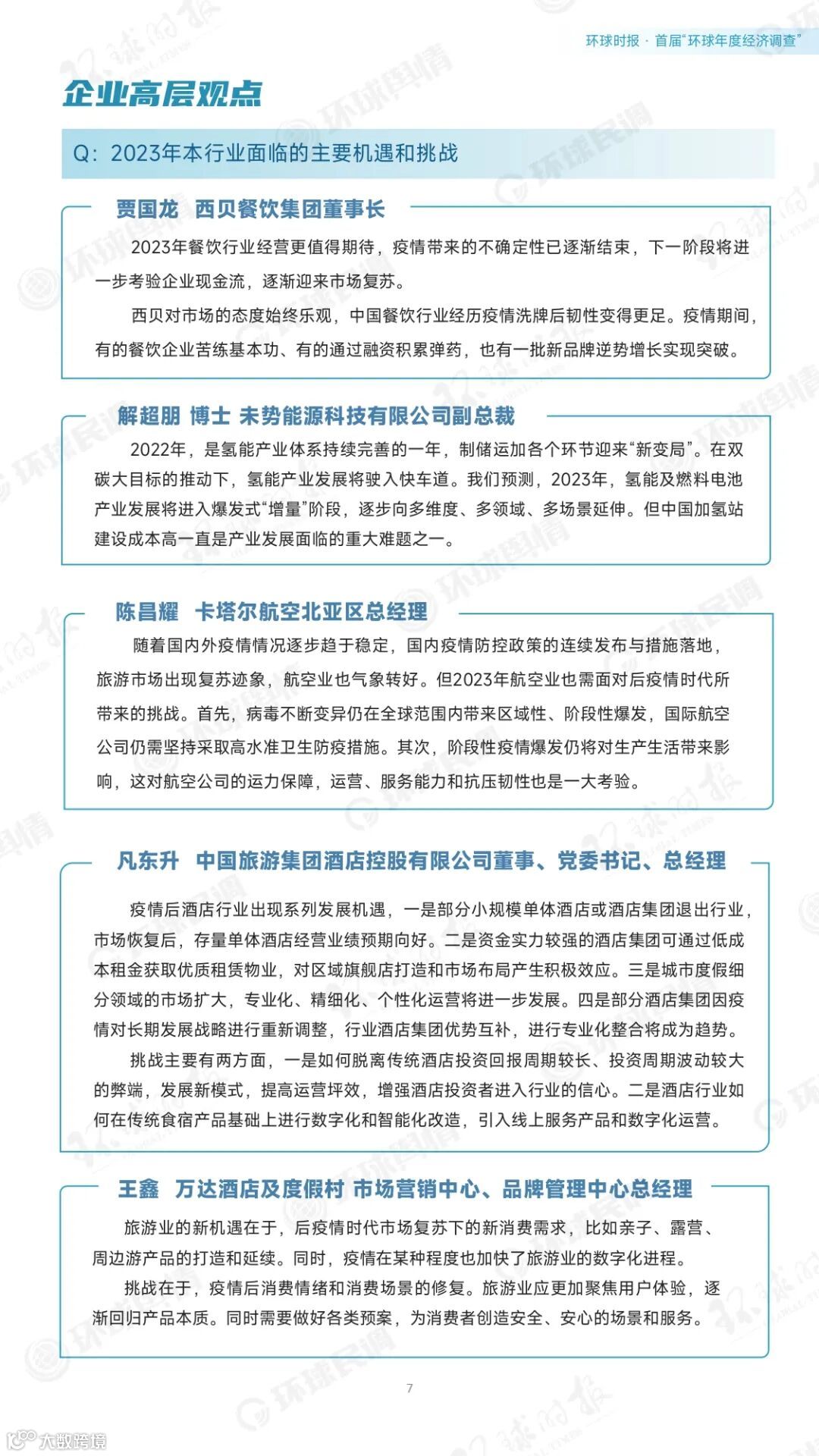 展望未来,胸怀使命,心有所信,方能行远。环球时报舆情中心联合环球时报采编中心,在岁末年初面向中外在华企业中高层发起主题为《经济预期、发展预测与趋势预判》的首届“环球年度经济调查”,倾听18个主要行业大类的405位中外企业中高层对中国和世界经济的见解和看法,汇聚开创未来的强大共识,携手向前,为2023年中国乃至世界经济的发展贡献智慧和力量。
