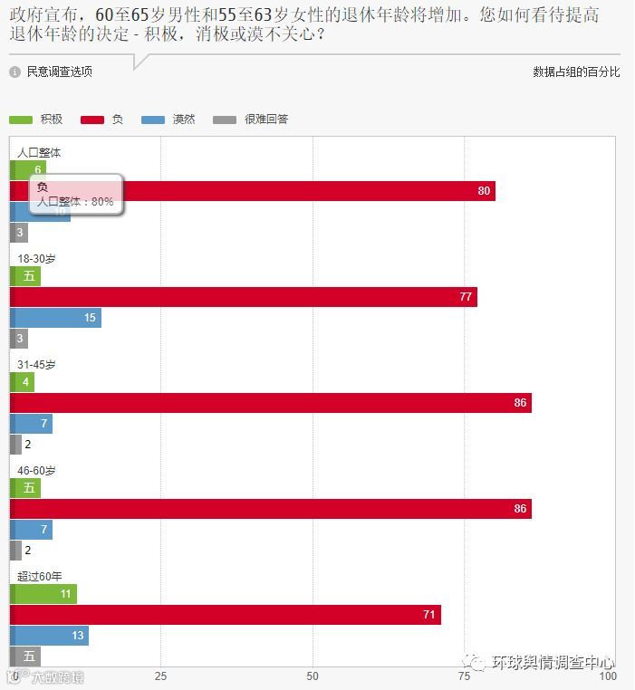 近日,俄罗斯政府宣布将延长公民的退休年龄,男性的退休年龄从60岁延长至65岁,女性从55岁延长至63岁。针对“您对延长退休年龄的政策持何种态度”的问题,80%的俄罗斯受访者表示“反对”,6%的人表示“支持”,10%的人表示“无所谓”,3%的人表示“难以回答”。反对延长退休年龄政策的受访者中,39%的人因“随着退休年龄的延长,许多人将活不到领退休金的那一天”而反对延长退休年龄。