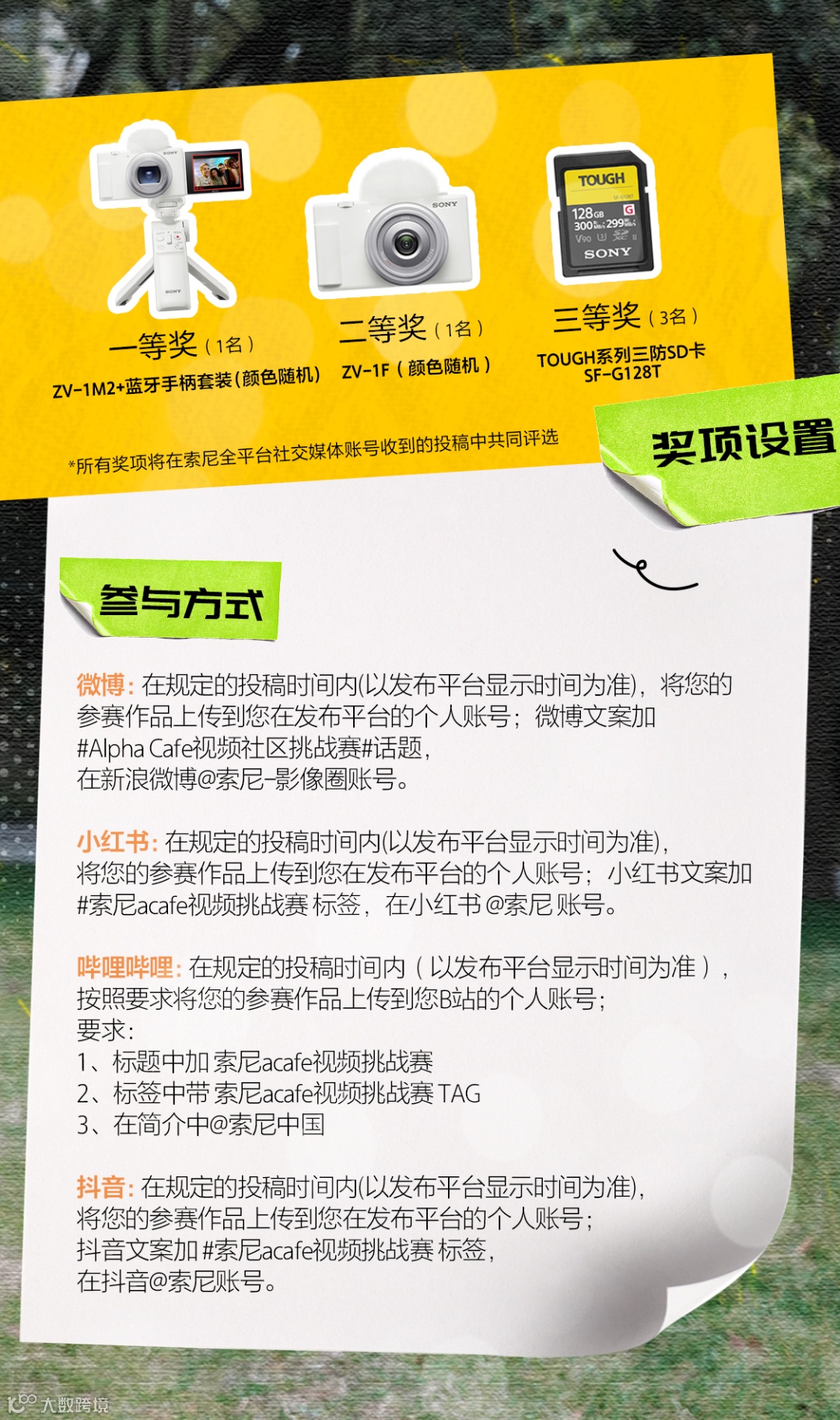 即日起至12月6日,和索尼一起记录一段“青春”故事!按照下图要求参与比赛,分享专属于你的青春/校园故事Vlog,即有机会赢得ZV-1M2 Vlog套装等奖品,为你的创作助力~