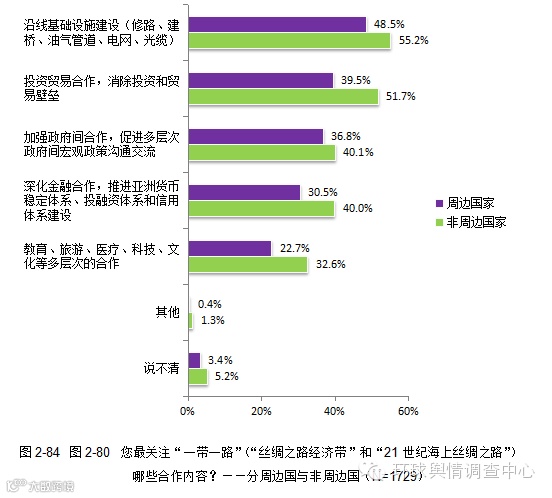 21.2非周边国家受访者比周边国家受访者更为关注“一带一路”的基础设施建设和投资贸易合作