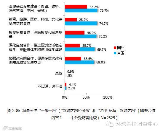 21.3中国受访者最关注“一带一路”倡议关于“沿线基础设施建设”的内容