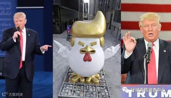 这只大公鸡还用双手做出特朗普的两种独特的手势:伸出食指,彰显自己的主导地位,将手指弄成O形,根据职业哑剧艺术家的解释,这代表着所谓的完美主义。