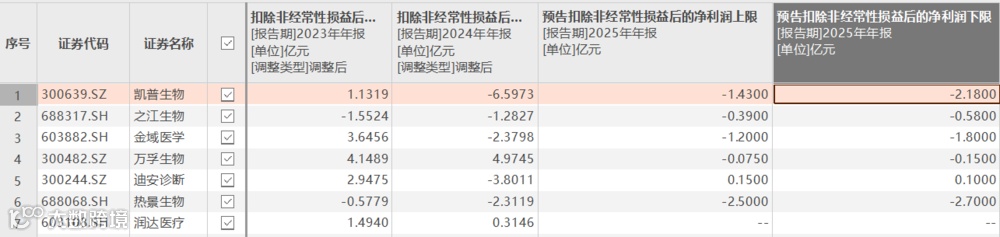 截至目前,有7家医疗检测企业披露2025年业绩预告,有6家亏损。其中亏损企业中含上述提到拥有尼帕病毒检测产品的凯普生物、之江生物、金域医学和万孚生物。