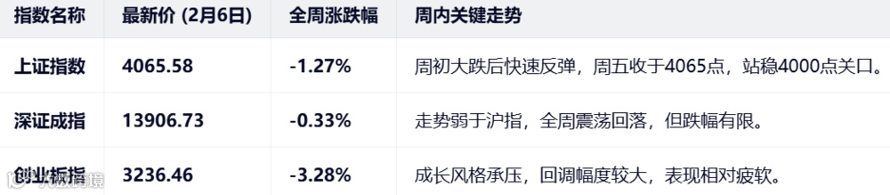 上周(2026年2月2日至2月6日)A股市场在春节假期临近的背景下,整体呈现震荡调整的格局,主要指数普遍回调,市场情绪趋于谨慎。