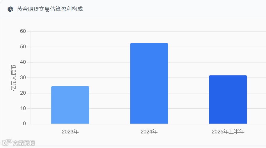中财期货在2023年、2024年及2025年上半年的黄金期货趋势交易中,估算盈利分别约为24.56亿元人民币、52.5亿元和31.6亿元,累计盈利约110亿元。