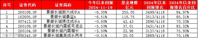 据Wind数据,今年年初至今,其代表产品“景顺长城新兴成长A”基金净值同类排名已到后15%行列;其余再管的5只产品前十大重仓除了仓位不同,持仓标的与景顺长城新兴成长A大多数相同,所以业绩表现和排名也相差不多,均在倒数行列。