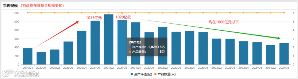 2019-2021年前后,刘彦春凭借较好“喝酒”行情,在管基金业绩一路走强,获得大量基民追捧,并在2021年度1季度在管基金规模突破千亿,成为继易方达张坤之后,中国公募行业第二位管理超过千亿规模的基金经理。
