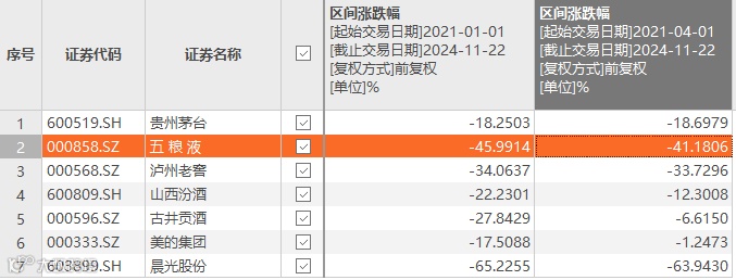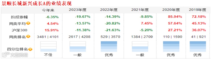 景顺长城新兴成长A基金在2021Q4-2024Q3季度山西汾酒股价累计下跌27%左右期间,没有减持,却越跌越加仓,持股从600万股逐渐加仓到975万股,直到2024Q3季度持仓占比8.36%成为该基金第四大重仓股,对基金净值的拖累可想而知。