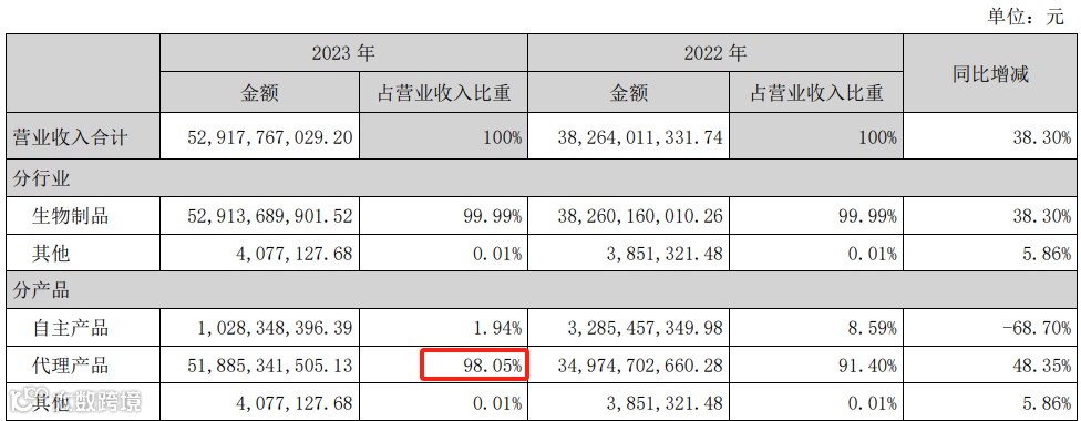 而智飞生物高度依赖于HPV疫苗的代理业务。分析智飞的收入结构就能发现,公司的代理产品收入依旧占绝大多数,2023年这一比例为98.05%。公司的自主产品贡献的营收可以忽略不计。而代理业务收入主要是来自HPV疫苗,可以说是HPV疫苗养活了这家公司。