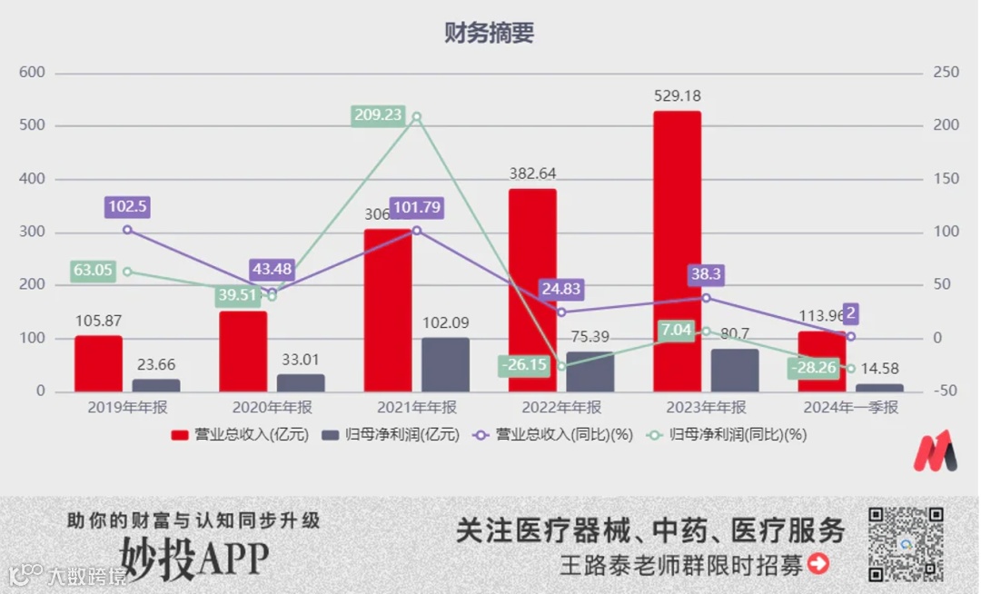 智飞的财报显示,2024年第一季度,公司的收入增速下降到了2%的水平,远低于过往五年的收入平均增速。