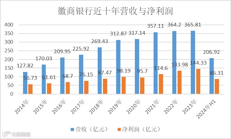 在过去十年里,徽商银行营收有六年实现双位数增长,七年实现净利润双位数增长,与A股上市的银行相比也不差。