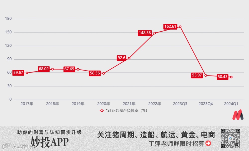 截至2024年第一季度,*ST正邦的债务问题已大幅缓解,货币资金高达30.38亿元,完全可以覆盖其19.592的短期借款和应付账款;资产负债率自2023年三季度的高位逐步下降至50.43%。这些积极的财务指标表明,*ST正邦正在稳步走出困境。