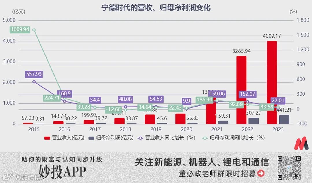 2023年,宁德时代同样也出现业绩增速放缓。