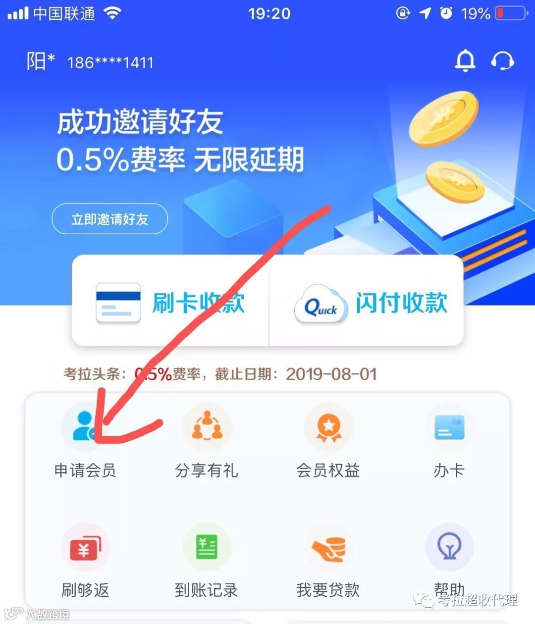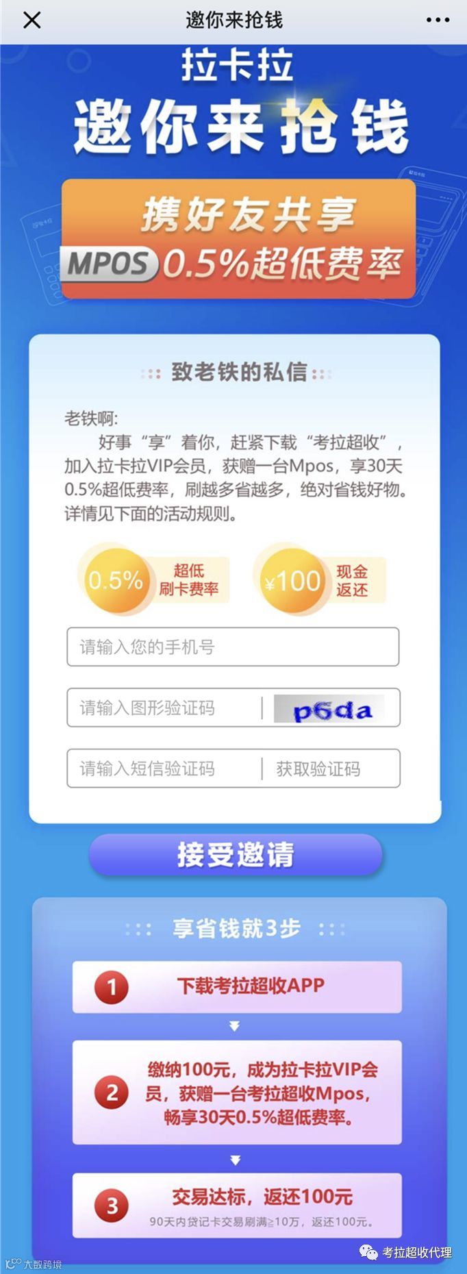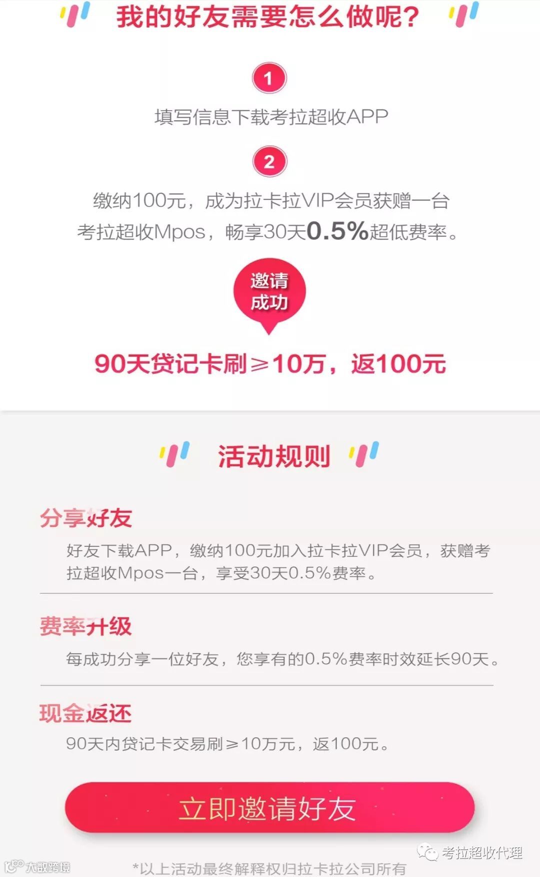(被分享好友需要在链接填写手机号码,下载考拉超收登录,点击会员申请,填写地址电话,支付100元押金。拉卡拉官方发货,客户收到机器绑定即可使用。无需再缴纳会员费)