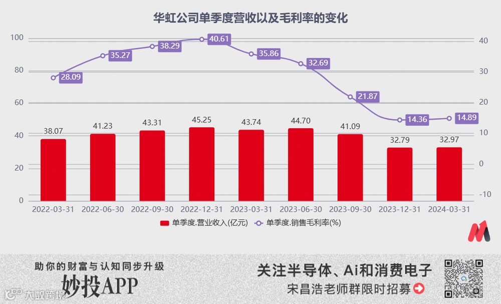 作为国内晶圆厂的龙头之一,在行业景气度持续下滑的背景下,华虹公司在2023年以及2024年一季度的业绩表现并不算好。