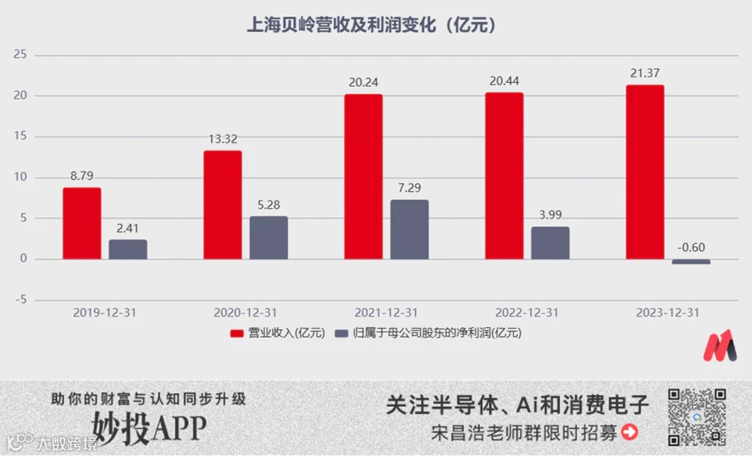 2022年以来,受到消费电子需求疲软的影响,上海贝岭的业绩在近年来同样下滑明显。2023年,上海贝岭实现营收21.37亿元,同比增长4.54%,归母净利润亏损0.60亿,同比下滑115%,近年来在利润层面首次出现亏损。