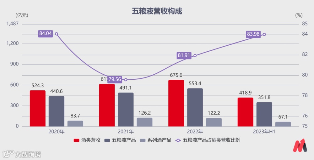 五粮液系列营收占比常年在80%之上,是公司营收的最大支柱。