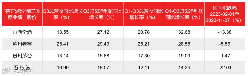 如果对比今年前三个季度的业绩增长,五粮液是茅、五、泸、汾四家top级酒企中最差的,茅台增速倒数第二。