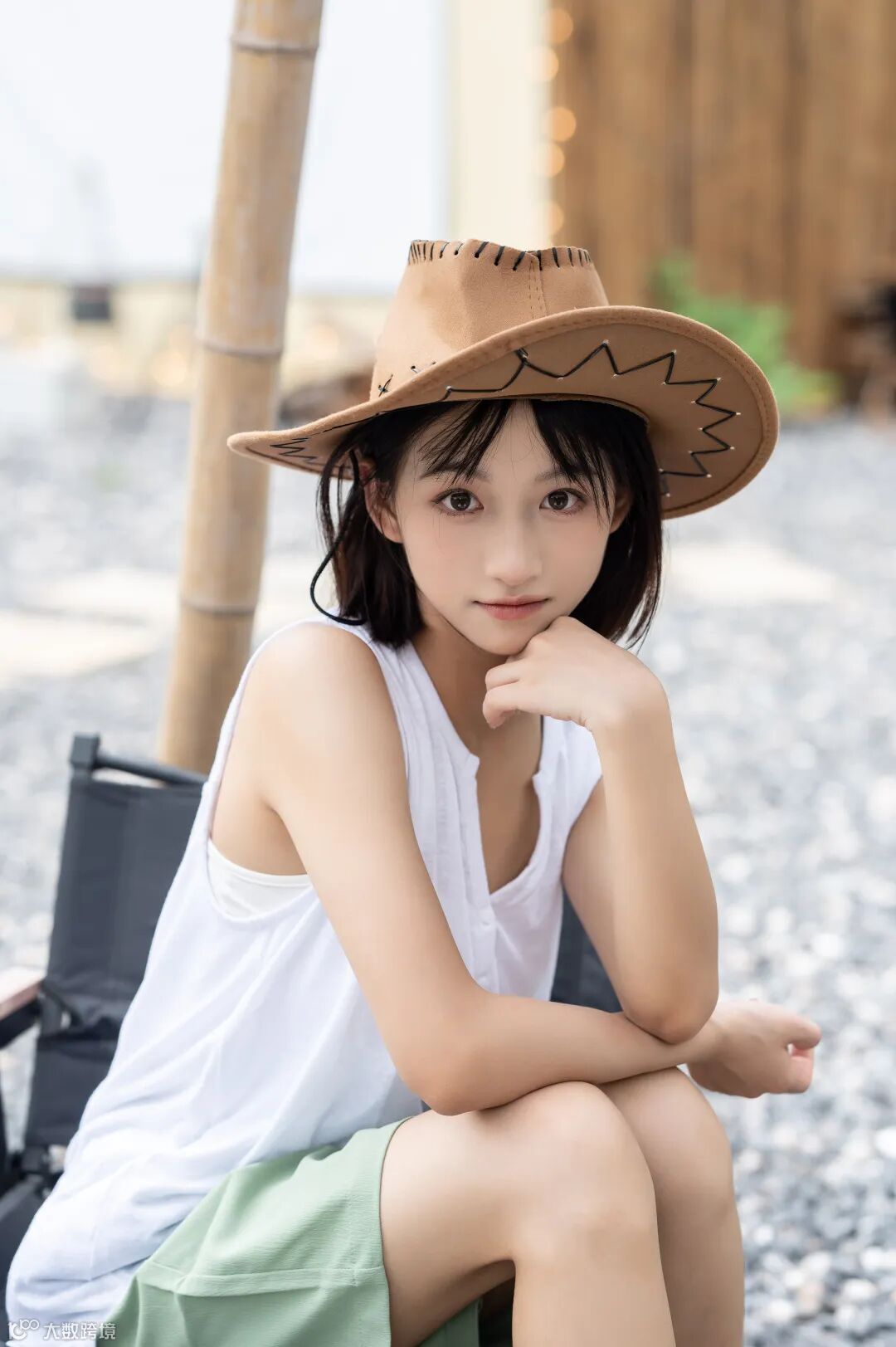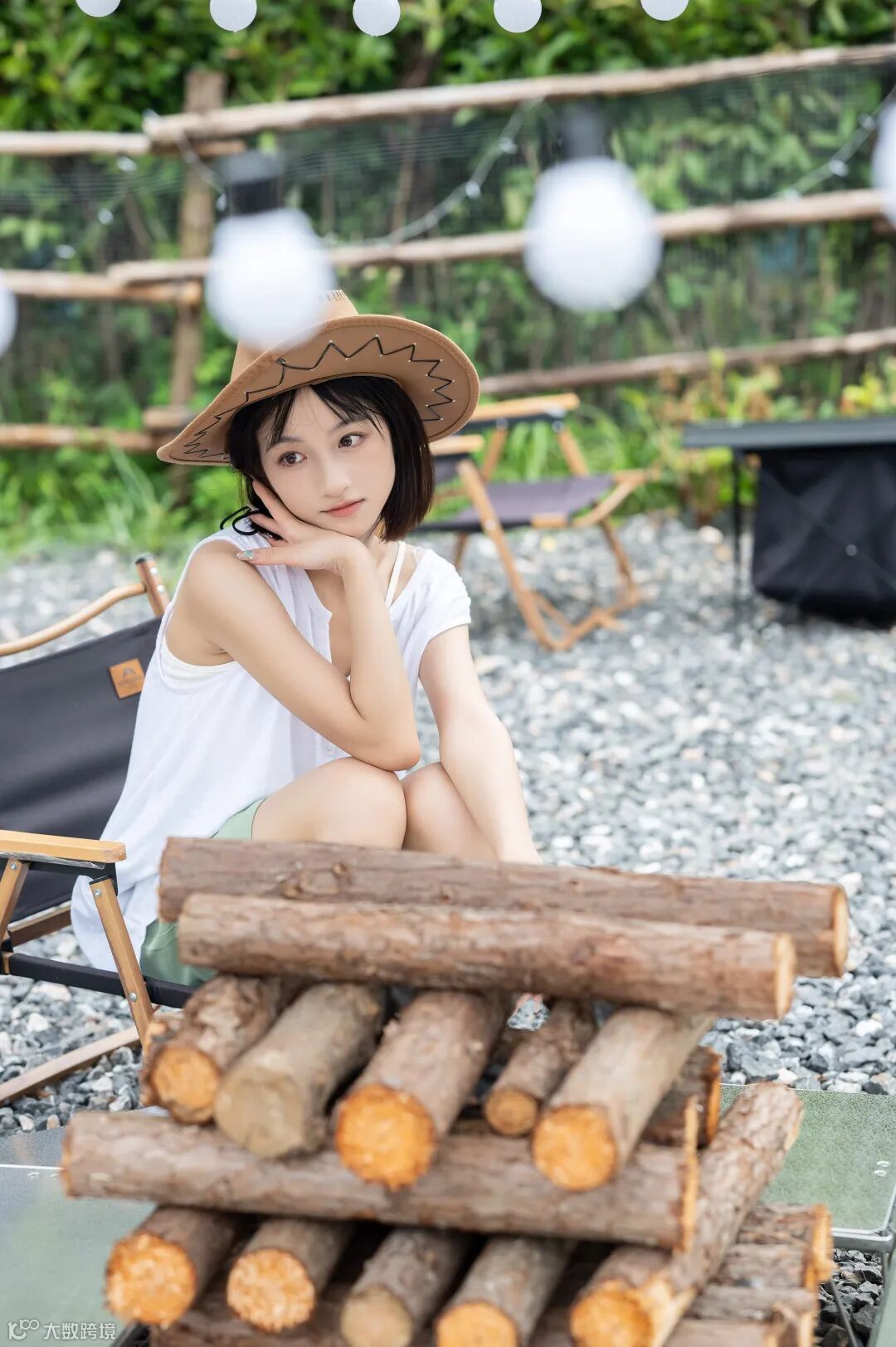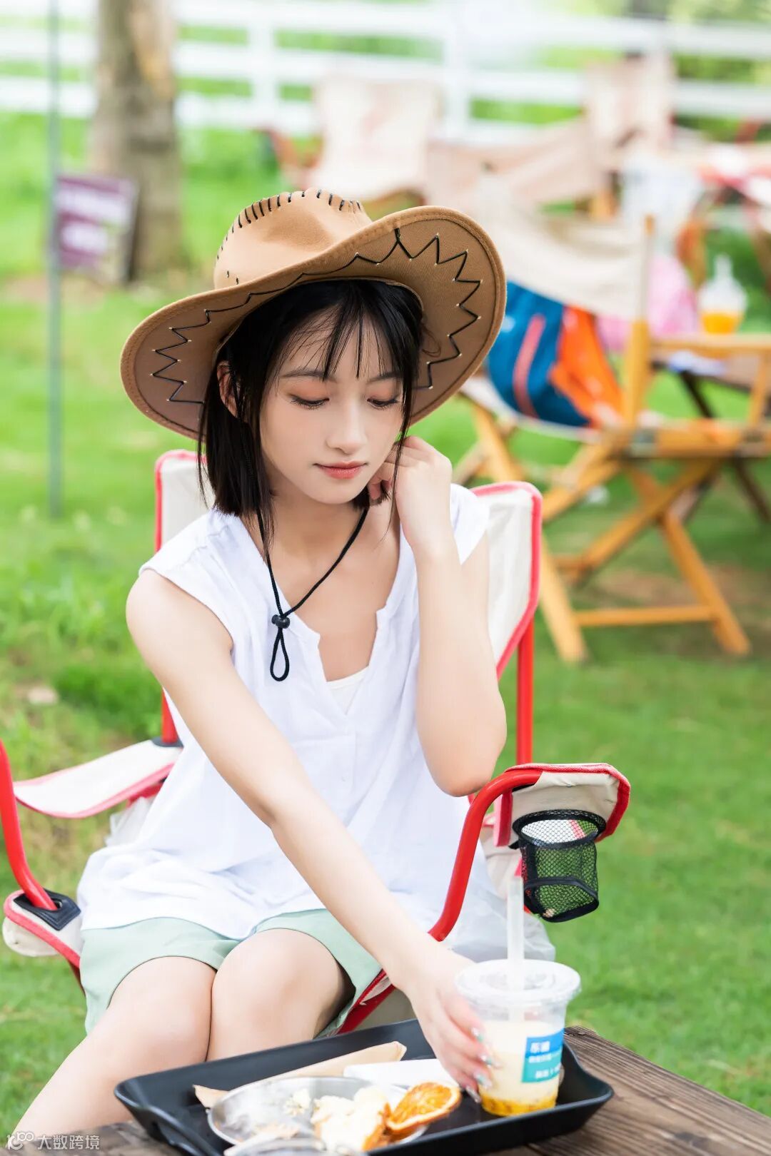 拍完山野田园风,模特换上了一身清凉宽松的外套,并佩戴了牛仔帽,切换成了度假模式!因为露营场拥有很多可以拍摄的元素,所以来到丰富的场景我一般会选择使用尼克尔 Z 50mm f/1.8 S镜头拍摄,其标准焦段可以纳入更多周边环境,烘托出氛围感。