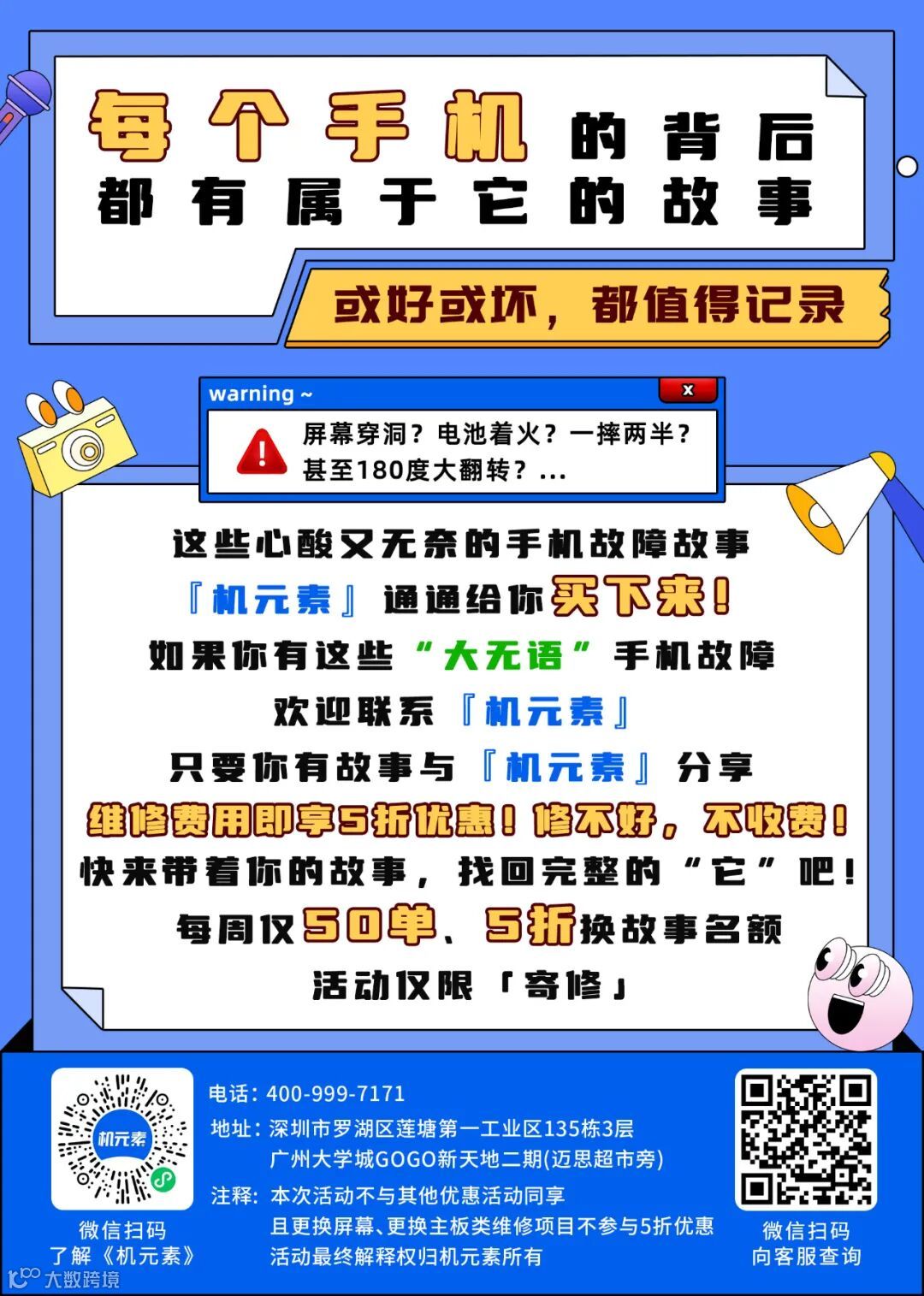 5折维修福利大放送!带上你的故事,来找机元素吧~