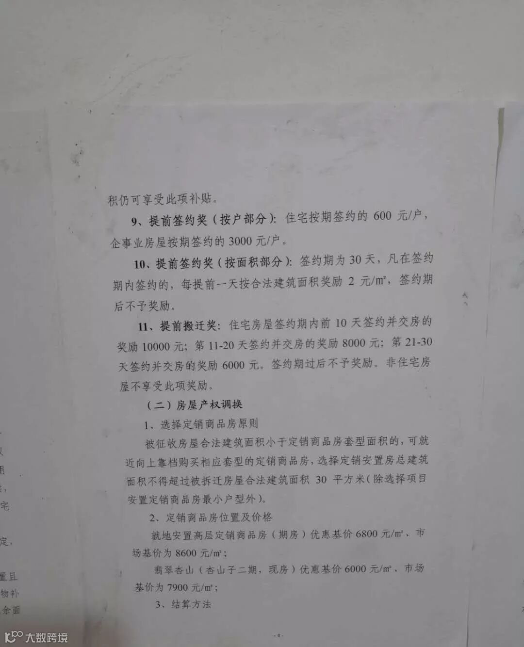 产权调换安置房及价格: