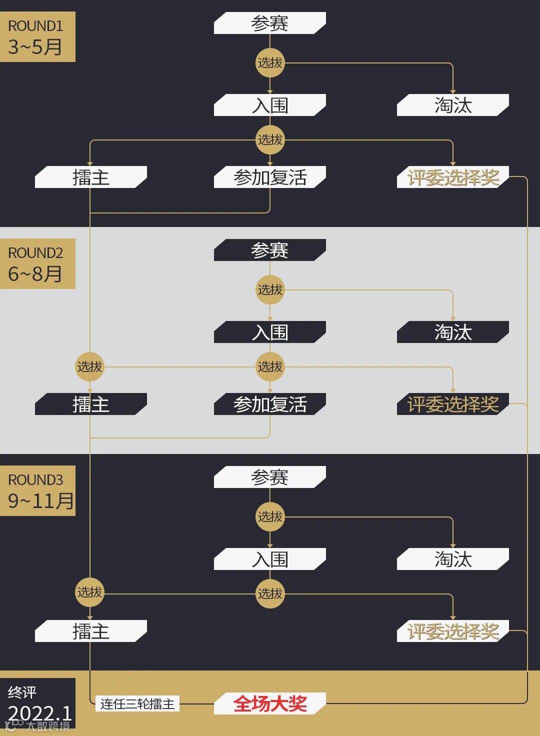 入围的150组作品中未能当选评委选择奖、擂主的作品,将进入复活赛(若已有作品获得评委选择奖或擂主资格,该作者的其它作品无法进入复活赛)。