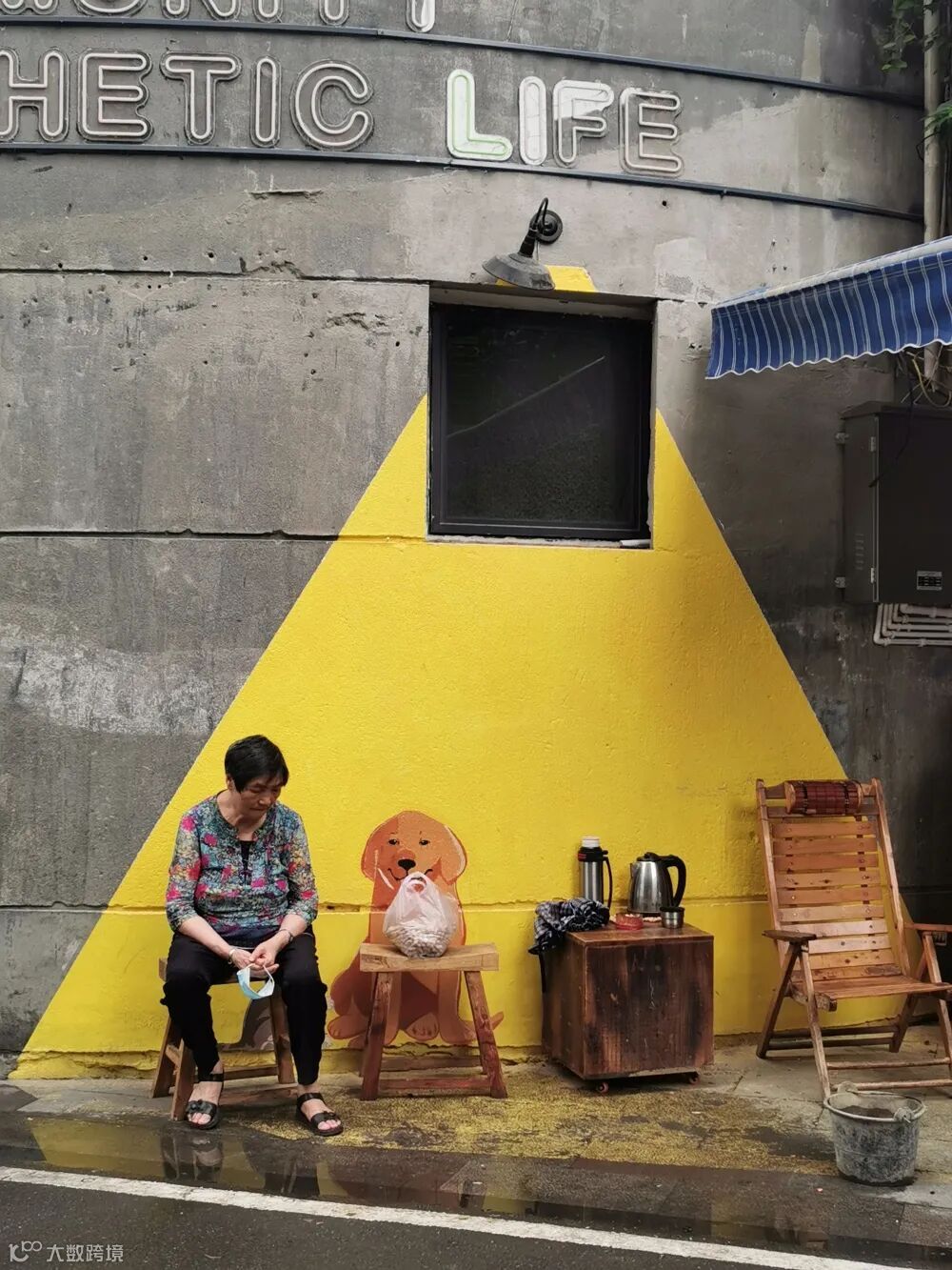 大众摄影:真人、假狗、陋街、新涂色,这个场景充满了矛盾与想象。仿佛休息的人需要陪伴一样。
