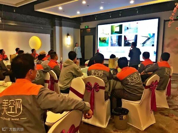 工程经理邱经理也一早在签到处接待美空间的工友们,一直等全员到齐才进入会议厅和参会人员互动交流。