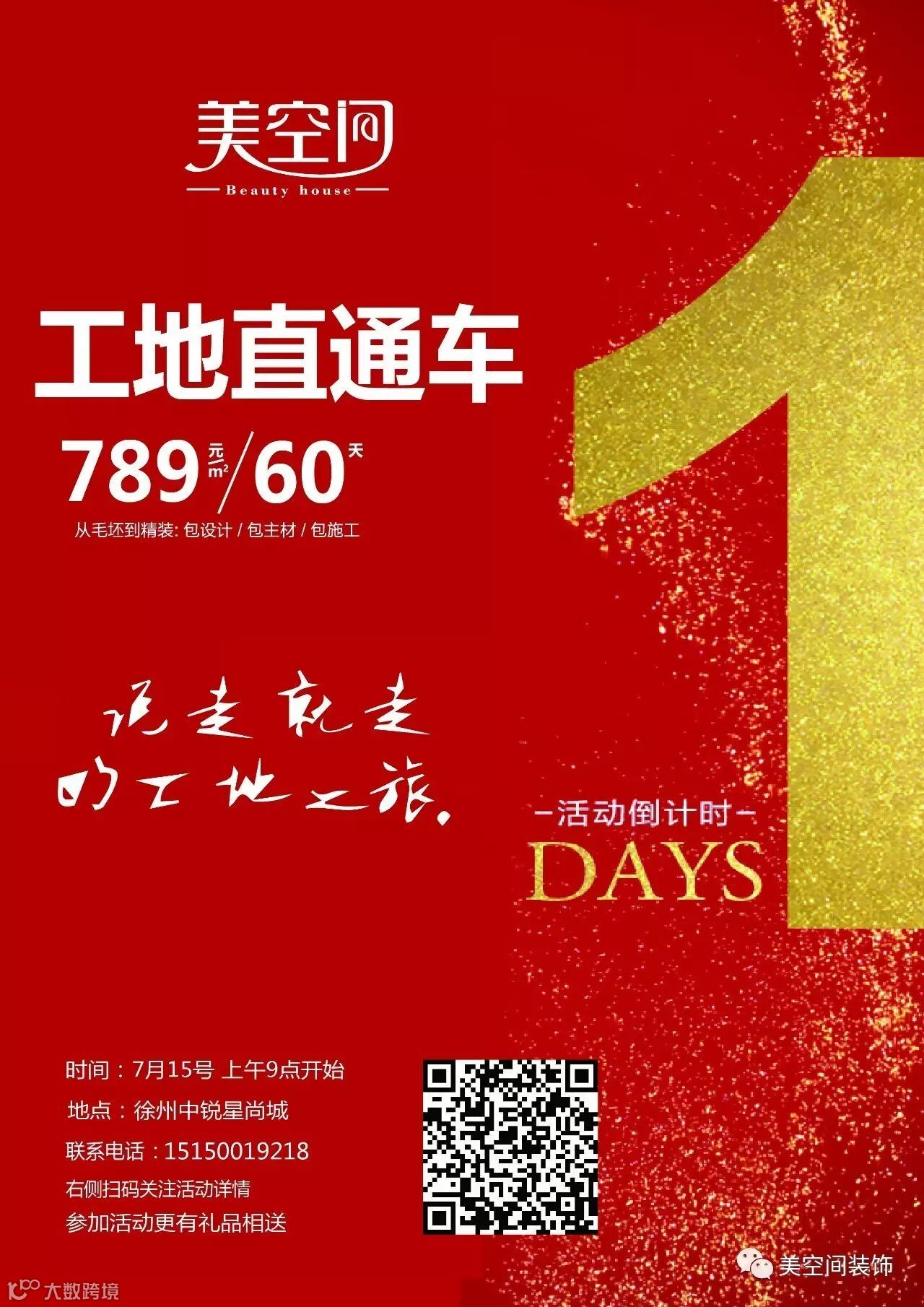 7月15日上午九点,徐州中锐星尚城售楼中心集合,专业设计师带您去装修现场参观各阶段施工工地,现场解答装修疑问。