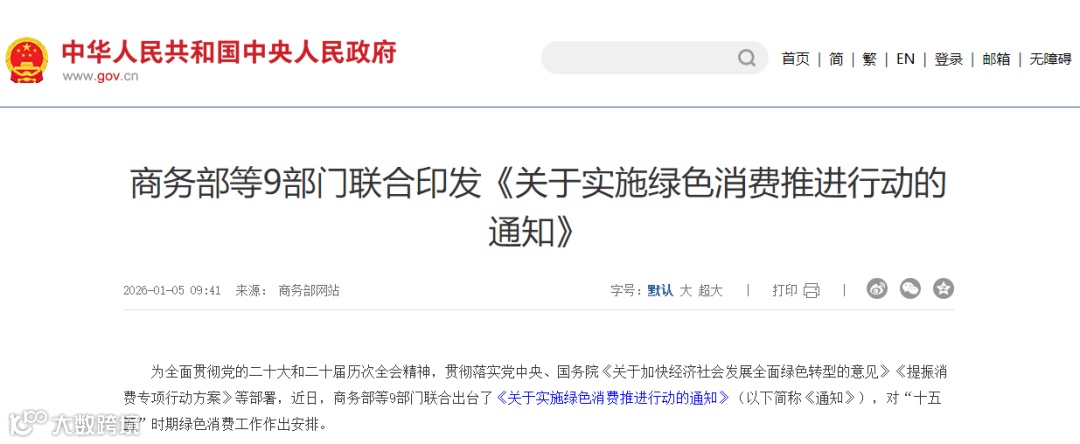 1月5日,商务部等九部门联合印发《关于实施绿色消费推进行动的通知》,推出20条举措构建绿色消费激励机制,培育可持续消费生态。涉及汽车行业的是:支持消费者购买新能源汽车,鼓励企业研发生产更环保的车型;同时挖掘二手车交易、汽车租赁、汽车改装等“后市场”潜力,探索闲置车辆盘活路径;通过绿色积分、金融支持等多元化措施,推动形成全民绿色消费共识。