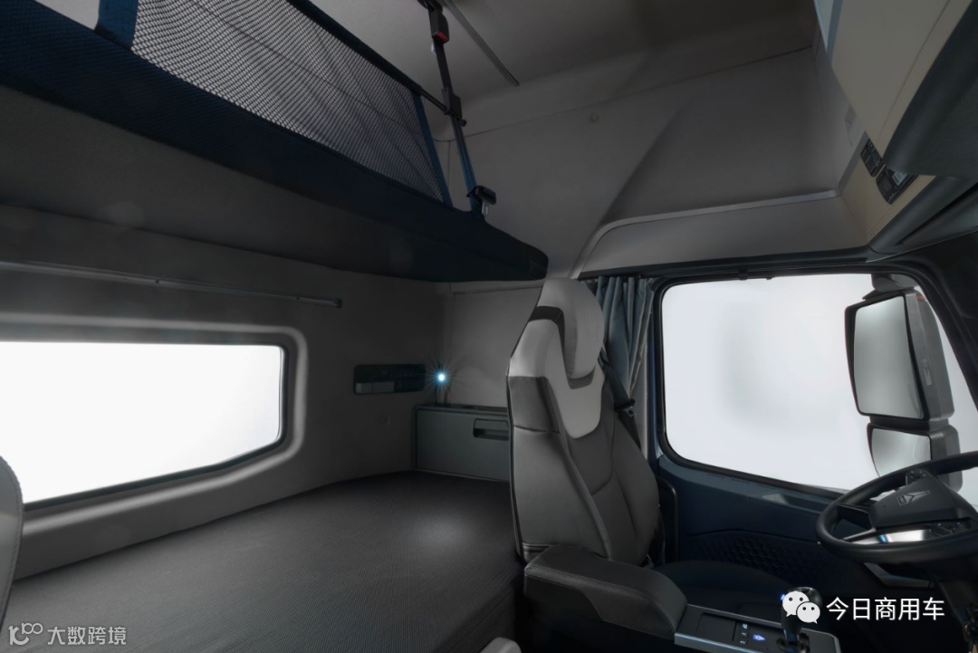 除此之外,卧铺采用人性化设计,1米超大卧铺,超大顶部空间,卧铺控制开关,独立暖风、驻车空调,并且还配有30L冰箱灯,让卡车司机的出行幸福感提升一倍。