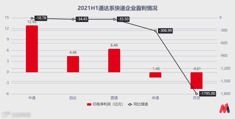 激烈的价格战下,快递企业不断下调单票收入“以价换量”,但单票成本并未有同比例的下滑,从而导致快递企业的盈利能力集体受挫。以2021年半年报为例,电商快递企业的归母净利润均出现了不同幅度的下降,甚至申通和百世处于亏损状态,分别归母净亏损1.46亿元、4.61亿元。