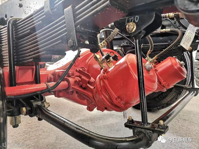 底部红色涂装的东风德纳车桥最明显,增加产品辨识度同时突出产品的高端属性,新的德纳车桥还配置了横向稳定杆,用以增加整车的行驶品质,并且重量上减轻了10%,承载力还提升了20%。