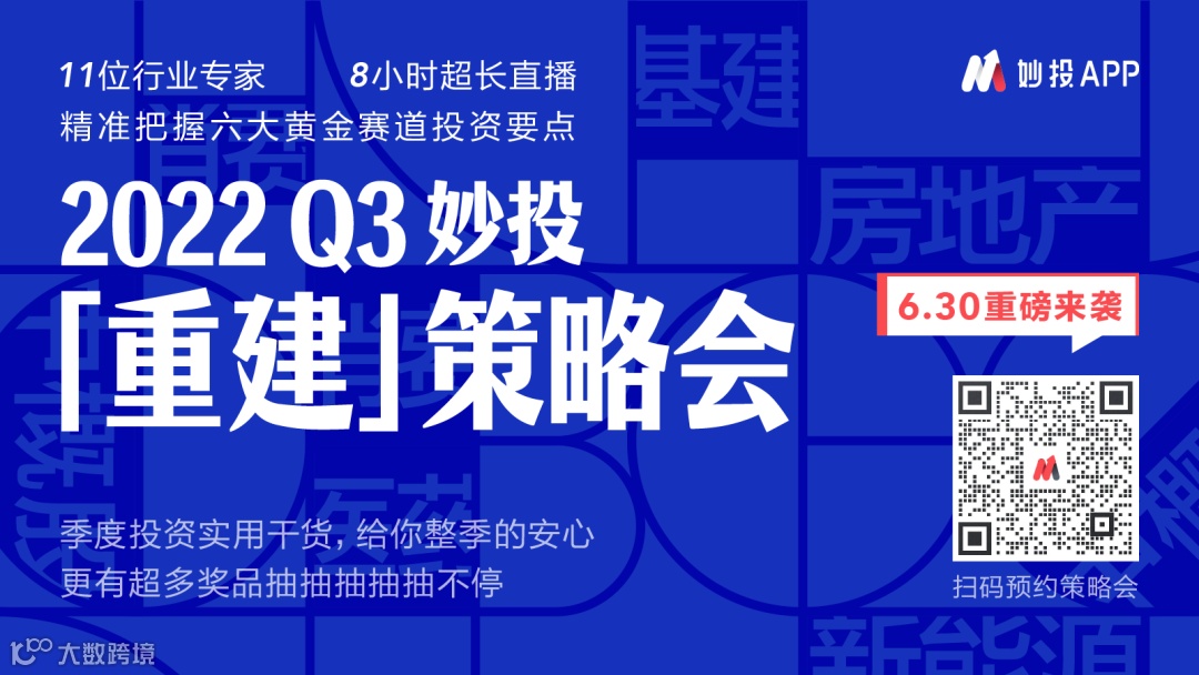 2022Q3妙投「重建」策略会将于6月30日在【妙投APP】线上直播,本次会议邀请了11位行业专家、8小时超长直播,带你精准把握六大黄金赛道投资要点。本文作者Eastland也将参加策略会,分享其观点。目前策略会已经开始预约,添加妙妙子微信(huxiuvip302)咨询详情。
