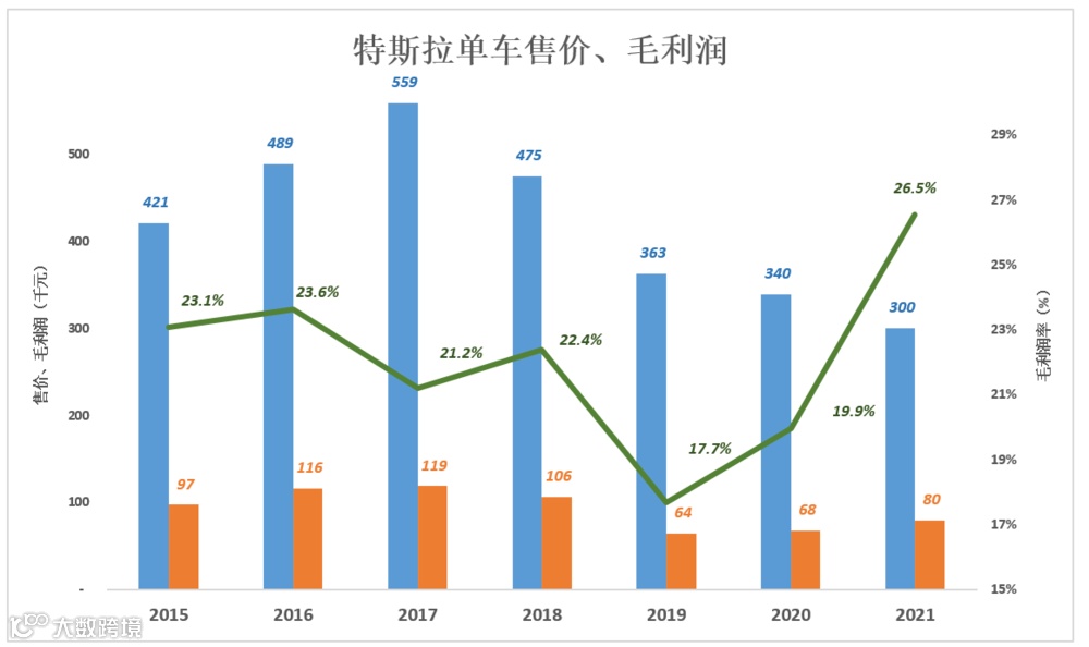 2021年,特斯拉销售均价仅为2017年的一半,毛利润却增长了500%!