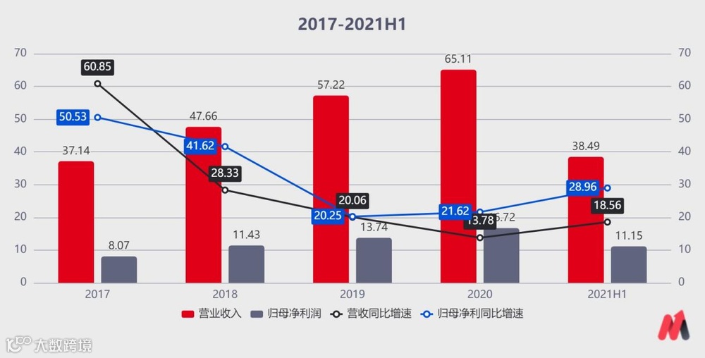 受益于产品的量价齐升,公司的业绩近年来持续增长。2021年上半年,公司实现营业收入38.49亿元,同比增长18.56%;归母净利润11.15亿元,同比增长28.96%。公司的增速保持稳定。