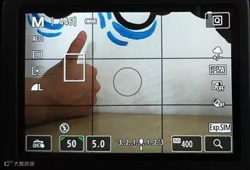 体现在相机上,有一个叫做测光标尺的东西,标尺指向0时为正确曝光,如下图。具体来说,在使用M档时,我们在选定光圈、ISO的参数后,通过拨动快门使测光标尺位于中间,得到的光圈、ISO、快门的组合就叫曝光参数,这个过程就是测光。