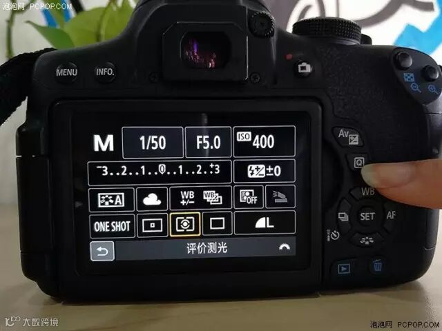 按住Q键及方向键可选择测光方式,按SET键进入测光菜单或调节机顶拨轮选择测光方式