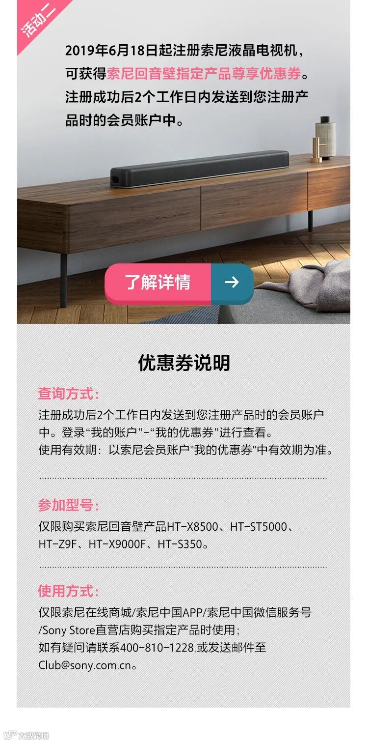 活动2详情:https://www.sonystyle.com.cn/sonyclub/pro_reg/soundbar_benefits/index.html