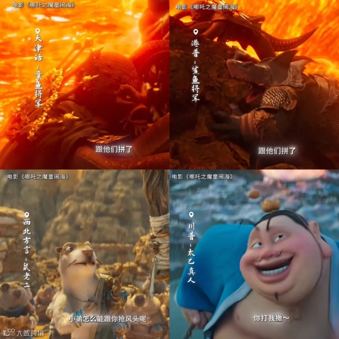《哪吒 2》制作背后的方言配音体系,宛如一颗璀璨的文化明珠,开创了新的文化表达维度。四川话版太乙真人的插科打诨,巧妙融入《华阳国志》记载的古代巴蜀方言遗韵,为角色增添了独特的魅力。而在《哪吒 1》的基础上,影片又增加了天津话、西北方言、港普等中国特色地方语言。