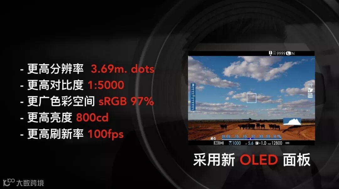 新的光电混合取景器,拥有 x0.5 的OVF(光学取景器),视野范围扩大了。