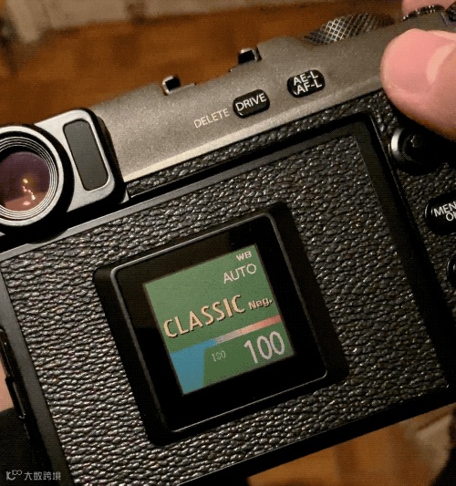但合上LCD屏后,眼前见到是一个全新设计的子屏幕,可根据用户的设置来显示电量及其它参数信息,或选择显示你正在使用的胶片模拟模式。