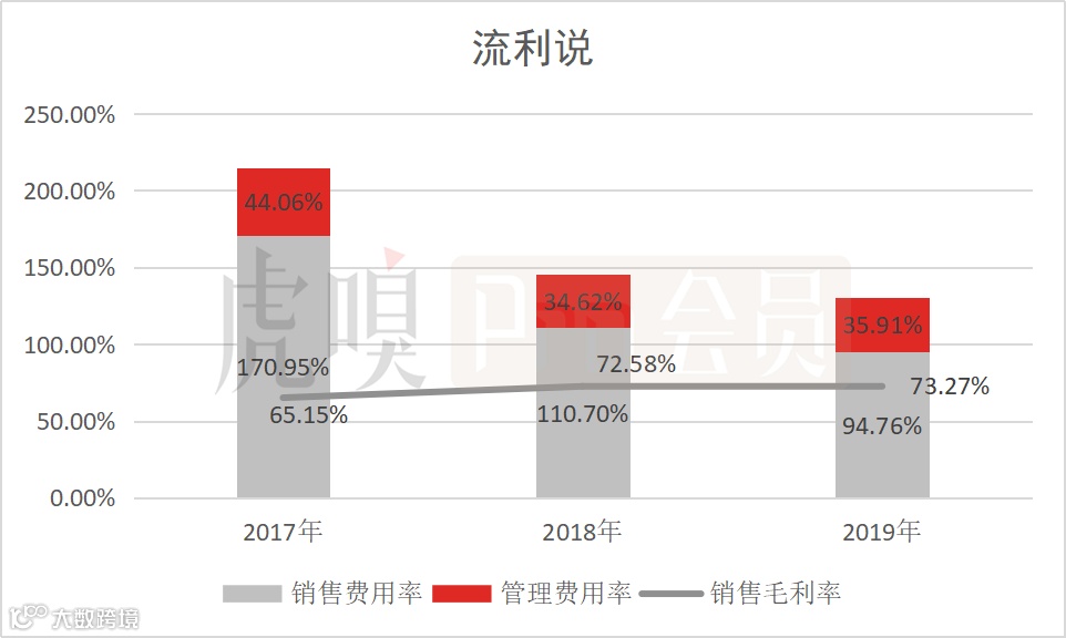 2017年-2019年,流利说的销售费用率分别为170.95%、110.70%和94.76%,完全超出当期的毛利率。所以,流利说高额的销售费用是平台盈利的最大桎梏。
