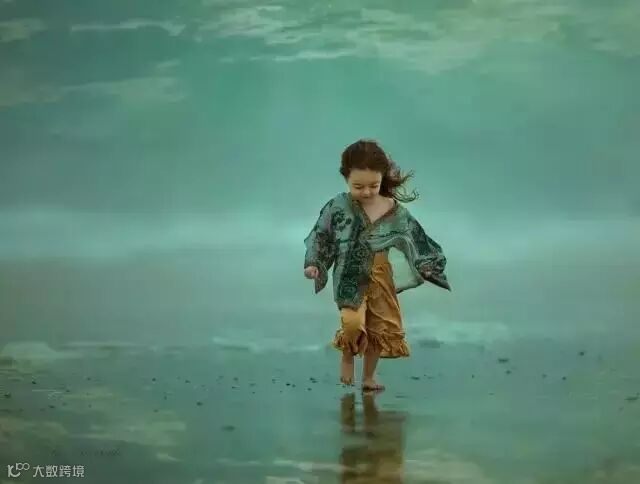 如果在前期拍摄没能遵循这一法则,我们也能通过后期对画面进行裁剪来让构图重回三分法。例如下面这张小女孩的照片,在用三分法重新裁剪构图后,更能突出小女孩迎风而来的飘逸感。