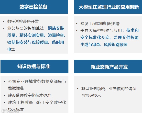 2025年,公司正在全力攻坚数字巡检装备以及基于本地部署deepseek服务的“建科·小智”研发应用等两项数字化专项重点。公司主动把握行业技术发展趋势及核心竞争力提升需求,以科技创新为引领聚焦智能建造与监管、人工智能与大模型、专业领域服务与产品创新等领域的核心技术,持续培养青年创新人才,以高质量科技成果为公司重大工程项目实施、市场开拓、品牌提升提供全方位的科技支撑服务,推动科技创新赋能高质量发展、引领行业创新发展。