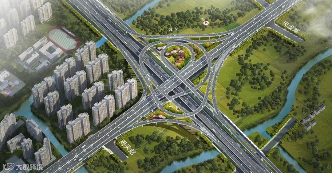 周邓快速路(S3—G1503)新建工程西起S3立交以西,东与现状G1503相接,途经周浦镇、康桥镇、川沙镇、祝桥镇,全长约17.2km。道路采用“高架主线双向6车道+地面辅路双向6快2慢”布置形式,全线共设置8对平行匝道,总体计划2027年上半年竣工。